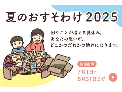 2025年7月~8月の夏休み期間に、全国のひとり親家庭へ「おすそわけ」(食品や日用品)をお届けするプロジェクト「夏のおすそわけ2025」を実施します。
