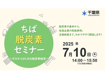 株式会社ちばぎん総合研究所(取締役社長:前田栄治)は、千葉県主催「ちば脱炭素セミナー~ゼロからはじめる脱炭素経営~」の運営を受託し、県内事業者の脱炭素化に向けた取組を支援します。