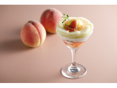 桃の香りと甘さを閉じ込めたコンポートとブランマンジェに、フルーツティーのジュレやアールグレイクランブル、グラニテ、セミフレッドを重ねました。果実の華やかさと奥行きを一度に味わえる、贅沢なパフェです。