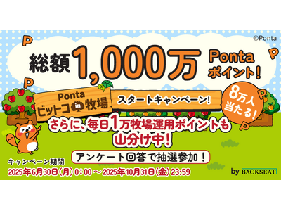 BACKSEAT暗号資産交換業株式会社(本社:東京都港区、代表取締役会長:林 政泰、代表取締役社長:前田 慶次、以下「BACKSEAT」)と株式会社ロイヤリティ マーケティング(本社:東京都渋谷区、代表取締役社長:勝 文彦、以下「LM」)は、2025年6月30日、Pontaポイントを活用した暗号資産(仮想通貨)運用体験サービス「Pontaビットコin牧場」の提供を開始いたします。また、本サービスの開始を記念し、総額1,000万円相当のPontaポイントをプレゼントするキャンペーンを実施します。