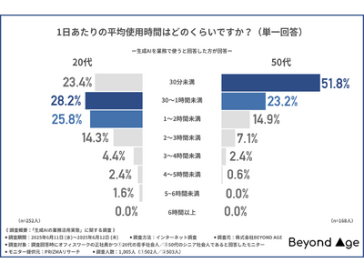 株式会社BEYOND AGE(所在地:東京都中央区、代表取締役:市原 大和)は、20代の若手社会人と50代のシニア社会人を対象に「生成AIの業務活用実態」に関する調査を行いました。
