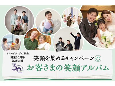 ホテルグランヴィア岡山(岡山市北区駅元町1-5、代表取締役社長:卜部 基宏)は、開業30周年を記念し、笑顔を集めるキャンペーン『お客さまの笑顔アルバム』を開催しています。第3章となる今回は、「笑顔」×「岡山」をテーマに、岡山で撮影されたお客さまの笑顔の写真とエピソードを募集いたします。