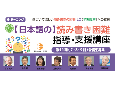 認定NPO法人エッジ(東京都港区 会長 藤堂栄子)は【日本語の】読み書き困難指導・支援講座 第11期生(7月~9月)を募集。読み書き困難がある子どもの支援方法を専門家によるeラーニングで学べます。