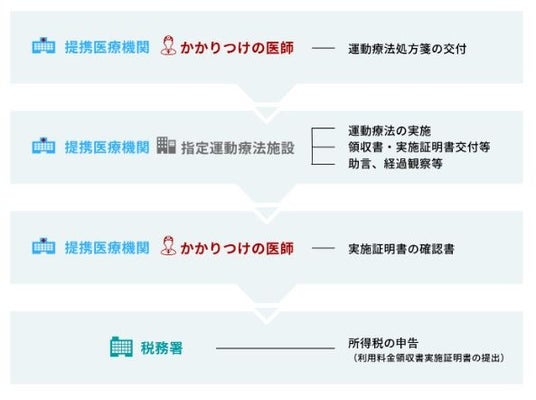 厚生労働大臣認定健康増進施設のうち、一定の要件を満たす施設について、厚生労働省が運動療法を行うのに適した施設として指定したものです。この指定を受けた施設では、医師の指示に基づく運動療法を実施する際に必要となる利用料金について、所得税法第73条規定する
