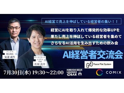 2025年7月30日(水)19:30~AIを営業に活用して売上を伸ばしている経営者向けの交流会を開催すると発表した。
