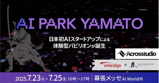 2025年7月23日(水)~25日(金)に幕張メッセ7ホール「AI World」内特設エリアで開催される日本初のAIスタートアップに特化した展示会パビリオン「AI Park YAMATO 2025」へ出展いたします。