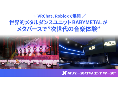 株式会社メタバースクリエイターズ(本社:東京都渋谷区、代表取締役:若宮和男、以下「当社」)は、アミューズグループでデジタル戦略事業を担う株式会社Kultureとの協業により、グローバルで高い人気を誇る、今年結成15周年を迎えるメタルダンスユニット「BABYMETAL」とともにアニバーサリーコラボ企画として次世代の音楽コンテンツとなる、Roblox及びVRChatのメタバースコンテンツを制作しました。