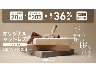 CAGUUU株式会社(本社:東京都港区、代表取締役社長:中村勇輝)は、おしゃれな高品質家具をリーズナブルな価格で展開する「CAGUUU」(呼称:カグー)より、オリジナルマットレスシリーズ「Grand Form(グランドフォーム)」を発売いたします。