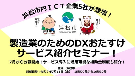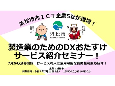 7月11日(金)に「浜松市内ICT企業5社が登壇!製造業のためのDXおたすけサービス紹介セミナー!」を開催します。