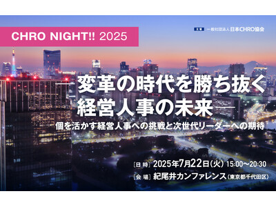 一般社団法人日本CHRO協会(東京都千代田区、理事長:中井戸 信英、以下日本CHRO協会)は、7月22日に、CHRO NIGHT!! 2025『―変革の時代を勝ち抜く経営人事の未来― 個を活かす経営人事への挑戦と次世代リーダーへの期待』を開催します。