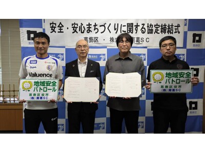 この協定は、「犯罪のない安全で安心して暮らせるまちづくり」を目指し、具体的には自動車用パネルを装着したパトロール活動や地域安全に関するイベントへの参加などを通じて犯罪防止を推進する取り組みを行います。南葛SCと葛飾区との提携は全国的にも先駆的な取り組みであり、街の安全に関する新たなモデルケースとなることが期待されます。