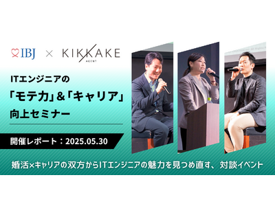 株式会社キッカケクリエイション(本社:東京都渋谷区、代表取締役社長:川島我生斗)と株式会社IBJ(本社:東京都新宿区、代表取締役社長:石坂 茂、東証プライム:6071、以下「IBJ」)は、2025年5月30日、渋谷・東京カルチャーカルチャーにて「ITエンジニアの『モテ力』&『キャリア』向上セミナー」を共催しました。