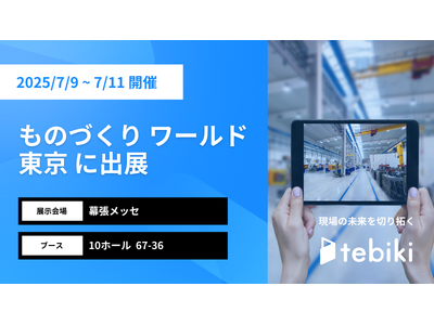 デスクレスワーカー向け現場支援システムを提供するTebiki株式会社(本社:東京都新宿区、代表取締役:貴山敬 / 以下、Tebiki)は、2025年7月9日(水)から7月11日(金)まで、幕張メッセにて開催される「第37回 ものづくり ワールド東京」に出展します。
