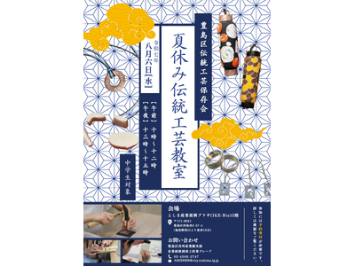 豊島区は、令和7年7月30日(水)・31日(木)、8月6日(水)に小・中学生を対象にした「夏休み伝統工芸教室」を、IKE・Bizとしま産業振興プラザ5階(豊島区西池袋2-37-4)にて開催します。