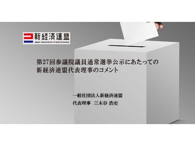一般社団法人 新経済連盟(所在地:東京都港区、代表理事:三木谷浩史、以下「新経連」)は、本日、第27回参議院議員通常選挙が公示されたことを受け、新経連代表理事のコメントを下記のとおり発表します。