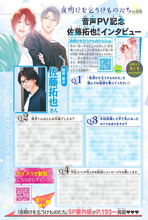 マンガParkの大人気作品「夜明けを乞うけものたち」(堤翔)がスペシャルショートで登場! 音声PV記念インタビューも!