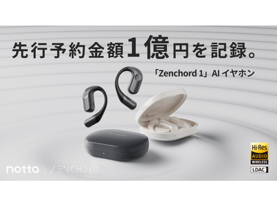 Notta株式会社(本社:東京都千代田区、代表取締役:Ryan Zhang)は、AI文字起こし技術を活用したスマートAIイヤホン『Zenchord 1(ゼンコード・ワン)』が、応援購入サービス「Makuake」での先行公開において、この度、応援購入額1億円を突破したことをお知らせいたします。プロフェッショナル音響ブランドZenchordとの共同開発による本製品は、2025年5月15日(木)よりMakuakeにて先行公開されており、わずかな期間で多くのユーザー様からご支持をいただき、圧倒的な達成を記録しました。