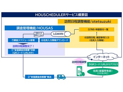 NTTアドバンステクノロジ株式会社(以下:NTT-AT、本社:東京都新宿区、代表取締役社長:伊東 匡)のグループ企業で、家屋評価システム「HOUSAS(ハウサス)」*1(以下:HOUSAS)の開発・販売を手掛けるNTT-ATエムタック株式会社(以下:エムタック、本社:東京都新宿区、代表取締役社長:澤田 閥)と、ふるさと納税管理システムをはじめ自治体向けソリューションを幅広く展開するシフトプラス株式会社(以下:シフトプラス、本店:宮崎県都城市宮丸町、本社:大阪府大阪市西区、代表取締役:中尾 裕也)が業務提携し、シフトプラスが提供中のLGWAN対応汎用予約システム「otetsuzuki(オテツヅキ)」(以下:otetsuzuki)とHOUSASを組み合わせて、家屋調査訪問日程調整サービス「HOUSCHEDULER(TM)(ハウスケジューラ、商標出願中)」(以下:本サービス)を7月7日から提供開始します。
