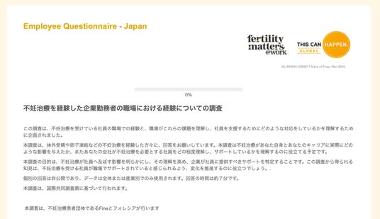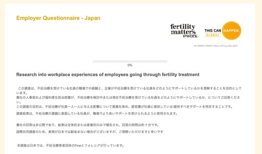 Fertility Matters@Work(代表者:Becky Kearns)と共同で、「仕事と不妊症・不育症治療の両立」に関する企業向けアンケート調査を、2025年7月1日(火)より開始いたしました。