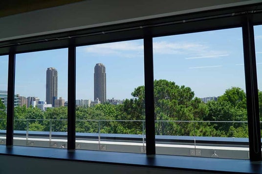 南面に大きな窓を設けた事務エリアからは、猿江恩賜公園の季節の移ろいを感じさせる樹々の景色を眺めることができます。