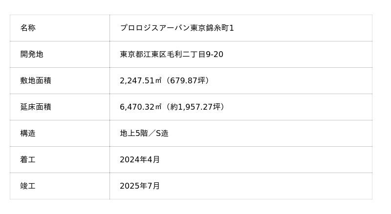 ■「プロロジスアーバン東京錦糸町1」施設概要