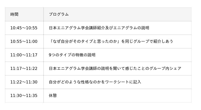 - 本事業のビジョンは、「非認知能力の向上が認知能力向上につながる」との仮説を実証し、世田谷区において産官学と保護者が連携し、まち全体でこどもの教育を考え、実践する「世田谷モデル」を構築することです。非認知能力は、一朝一夕で向上できる性質のものではないことから、本事業は5か年継続事業として推進します。今年度を初年度の位置づけとし、日本エニアグラム学会から講師を招き、自己分析・グループワークを通じて、自分の特徴を知り、自分の「強み」、多様性について考えます。