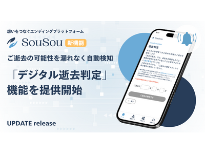 株式会社そうそう(本社:東京都荒川区、代表取締役:日下上総、以下「当社」)は、エンディングプラットフォーム「SouSou」において、2025年7月3日より新機能「デジタル逝去判定」を正式に提供開始いたします。
