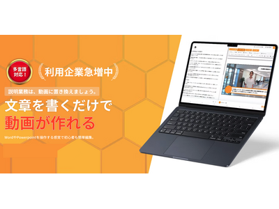 既存の資料(PowerPointやWord)をアップロードするだけで、AIが自動的にナレーションを生成し、動画を作成します。動画制作に特別なスキルは不要で、誰でも即日導入が可能。翻訳音声やBGMも自動生成されるため、低コストで高品質な動画を手軽に制作できます。