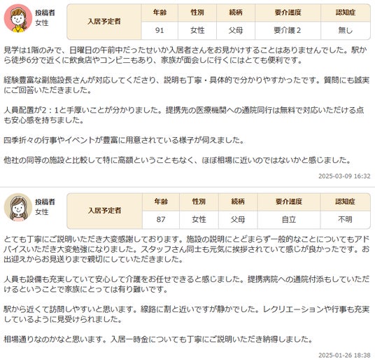 このような課題を受けて、「みんなの介護」では、全国の施設情報に加え、口コミを通じた実体験の共有を促進してきました。透明性のある情報提供に注力してきた結果、