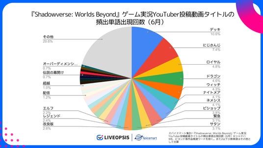 スパイスマート集計/『Shadowverse: Worlds Beyond』ゲーム実況YouTuber投稿動画タイトルの頻出単語出現回数(6月)
