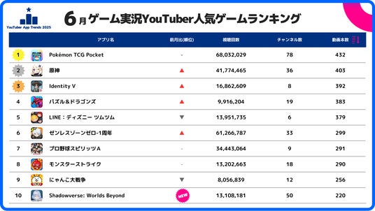 株式会社スパイスマートは、2025年6月におけるゲーム実況YouTuberが取り上げたスマホゲームのランキングをもとに、実況トレンドの分析調査を実施しました。
