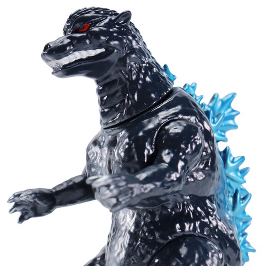 レトロソフビの定番のカラーリングでもある、かつての玩具などをオマージュした成形色「ゴジラブルー」にて、これまでとガラリと印象の変わったレトロな雰囲気となりました。
