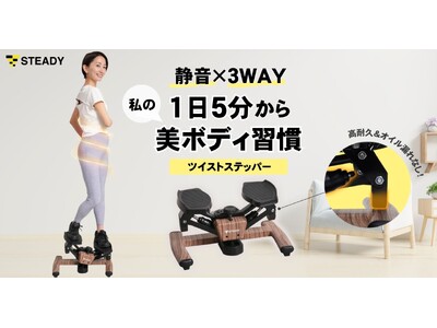 2018年のブランド展開開始から、SNSやカスタマーサポートで既存製品に対するお客様の声を拾い上げ、日本人の体格や考え方、住環境、ライフスタイルに配慮したホームフィットネス/ストレッチ製品を提案し、日本においてトップクラスのEC販売実績を誇るステディジャパン株式会社(本社:東京都新宿区、代表取締役CEO:森 由樹)は、運動習慣を身につけたい忙しい現代人のための「STEADY ツイストステッパー」を2025年7月4日(金)よりSTEADY公式サイト、総合オンラインストアAmazon.co.jp、楽天市場などにて販売開始します。