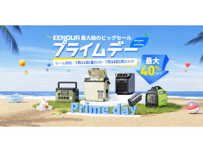 アウトドア電力供給の人気ブランド、EENOUR(イーノウ)は、7月8日(火)よりEENOUR 公式店舗にて「プライムデーセール」を開催いたします。