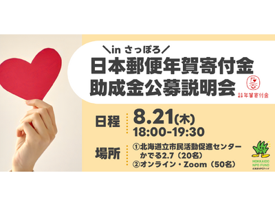 「寄付金付年賀はがき」や「寄付金付年賀切手」によって集められた寄付金を、社会福祉の増進(高齢者支援、障がい者支援、子どもの貧困対策等)や青少年の健全育成、地球環境の保全などの事業を行う、全国各地の団体に配分する助成事業の説明会です。人件費も助成対象となる活動系のプログラムを始め、施設改修や機器購入、車両購入などが対象となるプログラムもあります。