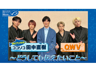 MSCアンバサダーを務めるココリコ田中直樹さんと、サステナブルな活動にも取り組むボーイズグループOWVが共演する動画は約48万回再生されました。OWVの4人がダンスの稽古をしているスタジオを田中さんが訪れ、MSC「海のエコラベル」を熱くアピールしようと試みるも、本番を控えて時間のないOWVに聞いてもらえないというコント仕立ての内容です。