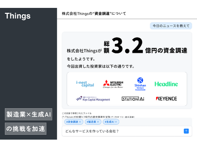 Thingsはこの環境変化を大きな機会と捉え、プロダクト開発の加速と事業拡大に耐えうる強固な組織体制の構築を目的に資金調達を実施。エンジニアに加え、セールスやカスタマーサクセス(CS)を含む組織全体の基盤を強化し、生成AIを活用した技術情報の掘り起こしと活用をより多くの現場で支援してまいります。