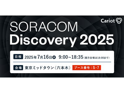 株式会社キャリオット(本社:東京都港区、代表取締役社長 齋藤 洋徳)は、2025年7月16日(水)、東京ミッドタウン(六本木)で開催される「SORACOM Discovery2025」に出展します。