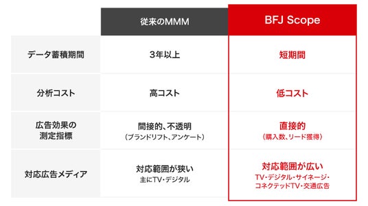 BFJ Scopeは、以下の点で従来のMMMと明確に差別化されています。