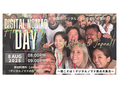 デジタルノマドの国内受入環境の整備や情報発信等を行う一般社団法人 日本デジタルノマド協会(代表理事:MOE 中野智恵、英名:Japan Digital Nomad Association 以下 JDNA、所在地:秋田県山本郡三種町)は、8月8日の「デジタルノマドの日」を記念し、全国の受入拠点がつながる同時ミートアップならびに地域ピッチイベント『JDNA 88 “デジタルノマドの日” 特別回!~我こそは!デジタルノマド拠点大集合~』(以下、本イベント)を開催します。本イベントは、全国各地で拡大中のデジタルノマド拠点がリアル・オンラインでつながる1日限りの特別企画です。各地ではデジタルノマドミートアップを開催する一方で、オンライン上では地域ごとの受入構想や2025年に向けた実施プログラム・挑戦内容などを3分間で発信するピッチイベントを実施します。