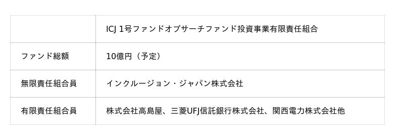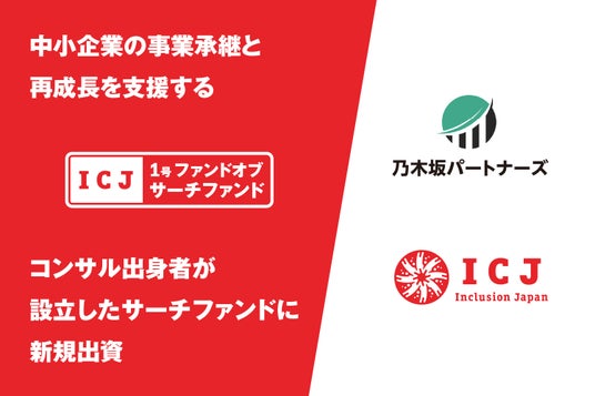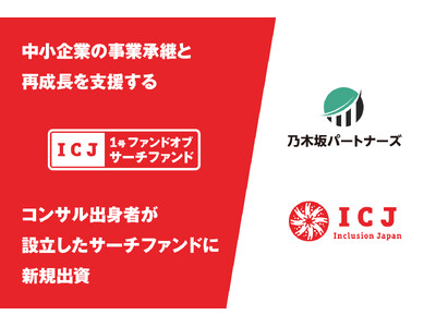 インクルージョン・ジャパン株式会社(以下 ICJ)が組成した、サーチファンドを投資対象とする「ICJ 1号ファンドオブサーチファンド投資事業有限責任組合(以下 本ファンド)」は、サーチファンドである乃木坂パートナーズ合同会社(東京都港区、代表 田中健太郎)へ出資したことをお知らせいたします。今回の出資は、本ファンドとして第三号案件となります。