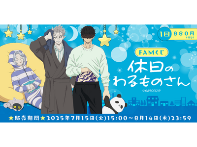 ファンエンゲージメントプラットフォーム「FAM」の企画・開発・運用を手掛ける株式会社Nagisa(本社:東京都渋谷区、代表取締役社長:横山佳幸)は、オンラインくじサービス「FAMくじオンライン」において、<『休日のわるものさん』FAMくじ>を2025年7月15日(火)15:00より販売開始いたします。