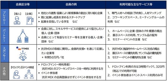 会員の区分や利用可能なサービス等については、以下のとおりです。
