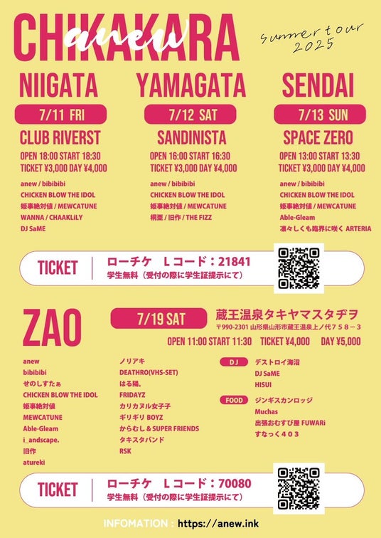 7月には、新潟・山形・仙台・山形蔵王の4か所を巡るツアー『CHIKAKARA anew SUMMER tour』を開催予定。