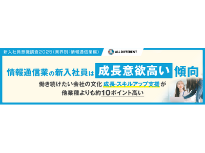 累計20,000社450万人以上の組織開発・人材育成を支援するALL DIFFERENT(オールディファレント)株式会社(所在地:東京都千代田区 代表取締役社長:眞崎大輔)および「人と組織の未来創り(R)」に関する調査・研究を行うラーニングイノベーション総合研究所(R)は3月25日~4月24日の期間で、2025年度入社の新入社員3,933人を対象に「新入社員意識調査」を行いました。本リリースでは、情報通信業の新入社員の調査結果を公表いたします。
