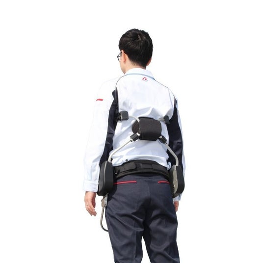 オランダ製アシストスーツのレイボはエネルギー回生システムを利用して前屈姿勢での肩や腰にかかる負担を軽減。パッドには独自開発した素材“EXGEL”を搭載し装着感向上。