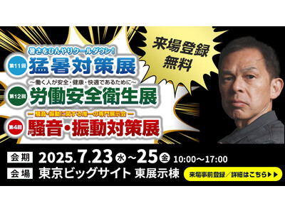 一般社団法人アシストスーツ協会(東京都中央区、代表理事:飯田 成晃)は、2025年7月23日(水)より東京ビッグサイト東展示棟にて開催される「猛暑対策展/労働安全衛生展/騒音・振動対策展」へ出展いたします。