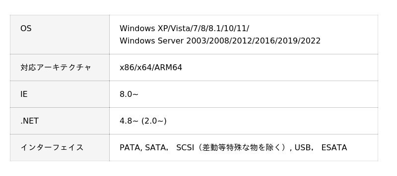 一部のUSB接続やIntel RAID、NVMeに対応しています。ディスクに異常が発生した場合、メールや音声で通知が可能なディスク(HDD/SSD)ユーティリティです。