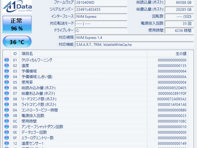 CrystalDiskInfoはストレージデバイスの自己診断機能である「S.M.A.R.T.(スマート)」を活用して各種データを可視化するツールです。
