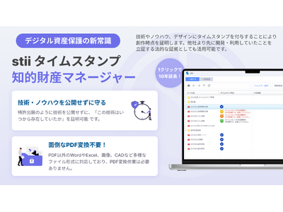 「stii タイムスタンプ知的財産マネージャー」は、研究ノートや技術資料、図面、議事録などの電子ファイルに対して、